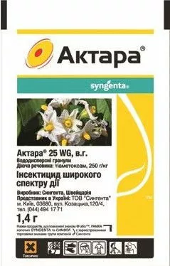 "Актара" - інсектицид кишково-контактної дії, має трансламінарну активністю. При внесенні в грунт у препарату проявляється системна дія. Завдяки здатності перерозподілу по листу і пересуванню по ксилемі "Актара" добре пригнічує цикадок, попелиць, білокрилок, деяких видів щитівок і ложнощитовок, жуків та інших комах.