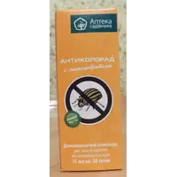 Двухкомпонентный инсектицид Антиколорад 75 мл – препарат смешанного действия, который применяется для защиты картофеля и других культур от колорадского жука и некоторых других вредителей. Обработку препаратом растений проводят в период вегетации. Обработку фруктовых деревьев проводят до и после цветения. Инсектицид Антиколорад 75 мл мы предлагаем купить по самой низкой цене в Украине с доставкой в любой населенный пункт. Преимущества инсектицида. Эффективная защита культур от колорадского жука, плодожорки, долгоносиков и других насекомых. Препарат не вызывает привыкания у насекомых. Защитный период действует долгое время. Препарат эффективно уничтожает как личинки, так и взрослых вредителей. Гибель насекомых происходит через несколько минут. Препарат безвреден для растения. Антиколорад инструкция по применению. Для обработки 1 сотки картофеля либо сахарной свеклы необходимо сделать рабочий раствор из 1.5 мл препарата разведенного в 5 литрах воды. Для обработки 1 сотки участка с томатами, огурцами, баклажанами, кустами роз необходимо сделать раствор из 1 мл препарата разведенного в 5 литрах воды. Для обработки фруктовых деревьев готовится раствор из 3 мл препарата и 5 литров воды. Для обработки 1 сотки участков гороха и пшеницы используют рабочий раствор из 1.5 мл препарата и 5 литров воды. Для освобождения участков от саранчи используют раствор 1.5 мл средства, разведенные в 5 литрах воды. Культура Спектр действия Норма расхода препарата Способ, время обработки Срок ожидания, суток Картофель Колорадский жук, тля, картофельная моль, совки, трипсы, клопы 1,5 мл на 3-5 л воды на 1 сотку Опрыскивание в период вегетации при появлении вредителей 20 Плодовые в т.ч. яблоня, груша Почечный долгоносик, яблоневый цветоед, букарка, казарка, яблоневый пилильщик, трипсы, тля, грушевый клоп, отдельные виды клещей 3-5 мл на 5-8 л воды на 1 сотку 30 Зерновые колосовые культуры Вредная черепашка, хлебные жуки, трипсы, блошки, цикадки, пиявицы, тли, мухи и другие 3 мл на 3-5 л воды на 1 сотку 20 Кукуруза Стеблевой кукурузный мотылек, западный кукурузный жук, мидляк, чернотелки 2,5 мл на 3-5 л воды на 1 сотку К сведению потребителя. Мировой опыт применения аналогичного препарата: Томаты Колорадский жук, подгрызающие совки, трипсы, тля и другие виды вредителей 1,5 мл на 3-5 л воды на 1 сотку Опрыскивание в период вегетации при появлении вредителей 20 Капуста Билан, медведки, тли, подгрызающие совки, капустная моль, блошки Бобовые Гороховая зерновка, плодожорка, долгоносики, тля, трипсы 1,5 мл на 3-5 л воды на 1 сотку 14 Свеклу Свекольные долгоносики, блошки, щитоноски, тли 1,5 мл на 3-5 л воды на 1 сотку 20 Источник