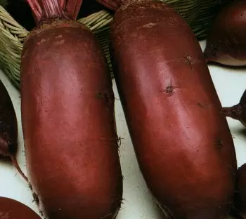 циліндричний, м’якоть темно-червона з фіолетовим відтінком. Сорт