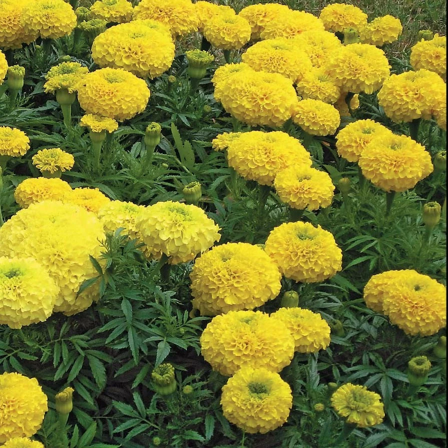 Купідон жовті - чорнобривці африканські. Однорічні рослини, утворюють компактні кущі і до 35 см у висоту. Квітки жовті, суцвіття махрові, діаметром до 10 см. Висівають насіння у відкритий грунт в кінці травня - початку червня, на відстані 1 - 1,5 см. Цвітуть з кінця червня до заморозків. Невибагливі, швидкорослі, світло - і теплолюбні, посухостійкі рослини. Оптимальна температура для росту молодих рослин 18-20 ° С Можуть рости в тіні. Висаджують їх в клумбах, рабатках, вазах і балконах.
