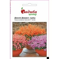 Діаскія Діамант, суміш - вдале поєднання кольорів екзотичної квітки зі схилів Драконових гір, яка особливо ефектно виглядатиме при вирощуванні в горщиках. Однорічна рослина висотою 25-30 см зі сланкими стеблами, всіяними безліччю маленьких квіточок. Висівають насіння на розсаду у березні, поверхнево, не присипаючи грунтом. До появи сходів (1,5-2 тижні) витримують температуру 18-19 °С, після - переносять у холодне місце. У кінці травня розсаду висаджують в окремі горщики. Рослина світло і теплолюбна, посухостійка, надає перевагу добре дренованим, не родючим грунтам. Зацвітає рано навесні та квітує до холодів кількома хвилями.