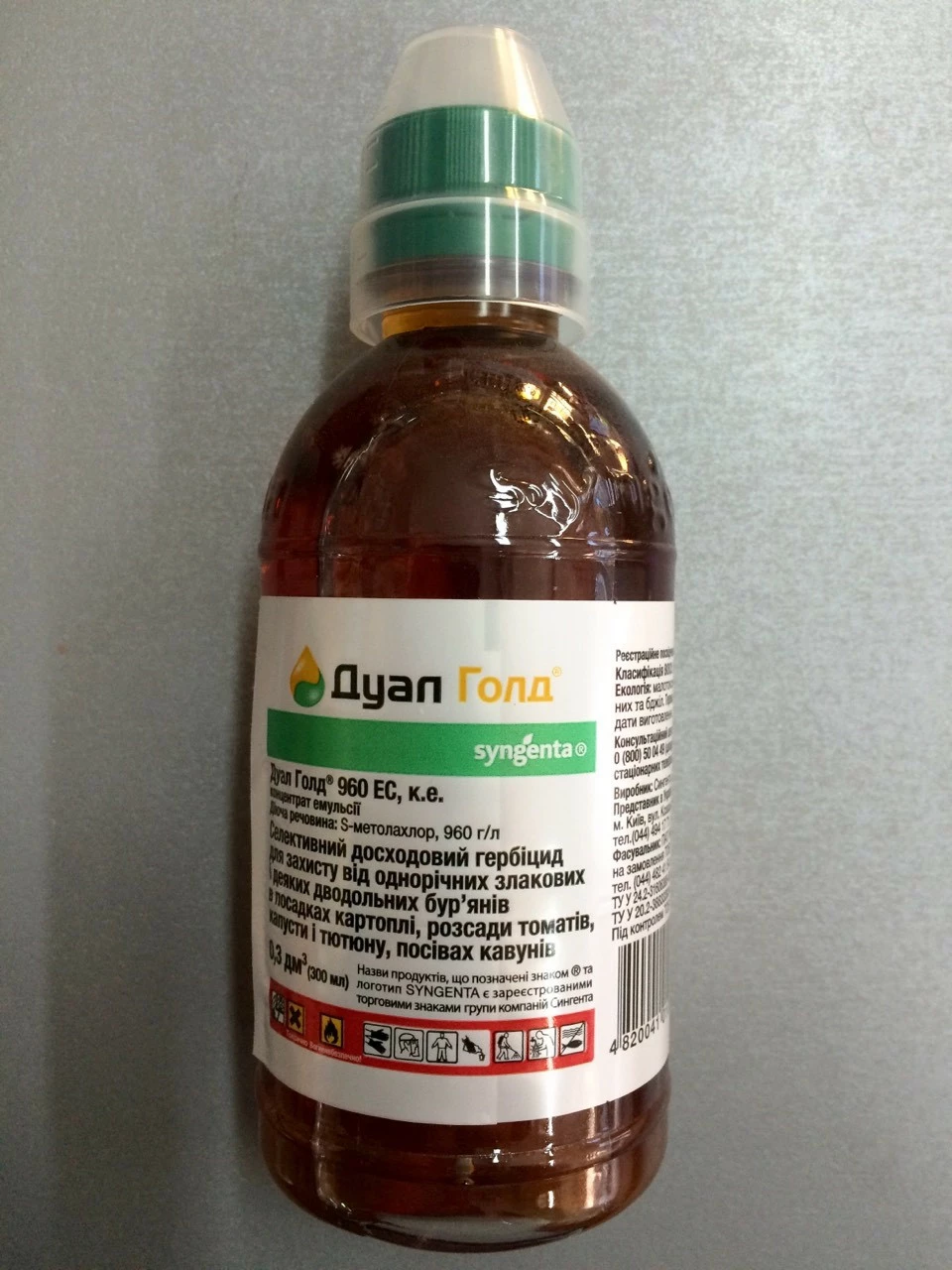 Дуал Голд 960 ЕС к. е. — гербіцид вибіркової дії, що його поглинає насіння бур’янів, яке проростає. У злакові бур’яни препарат потрапляє через колеоптиль, у дводольні — через коріння і сім’ядолі. Завдяки цьому бур’яни гинуть ще до появи сходів. Не рекомендується просапувати, рихлити в міжряддях після внесення гербіциду — це зменшить гербіцидну дію. У разі відсутності в ґрунті вологи рекомендується неглибока заробка (граблями) після внесення гербіциду. Препарат не леткий, тому висаджувати розсаду можна навіть через кілька днів після обробки ґрунту.