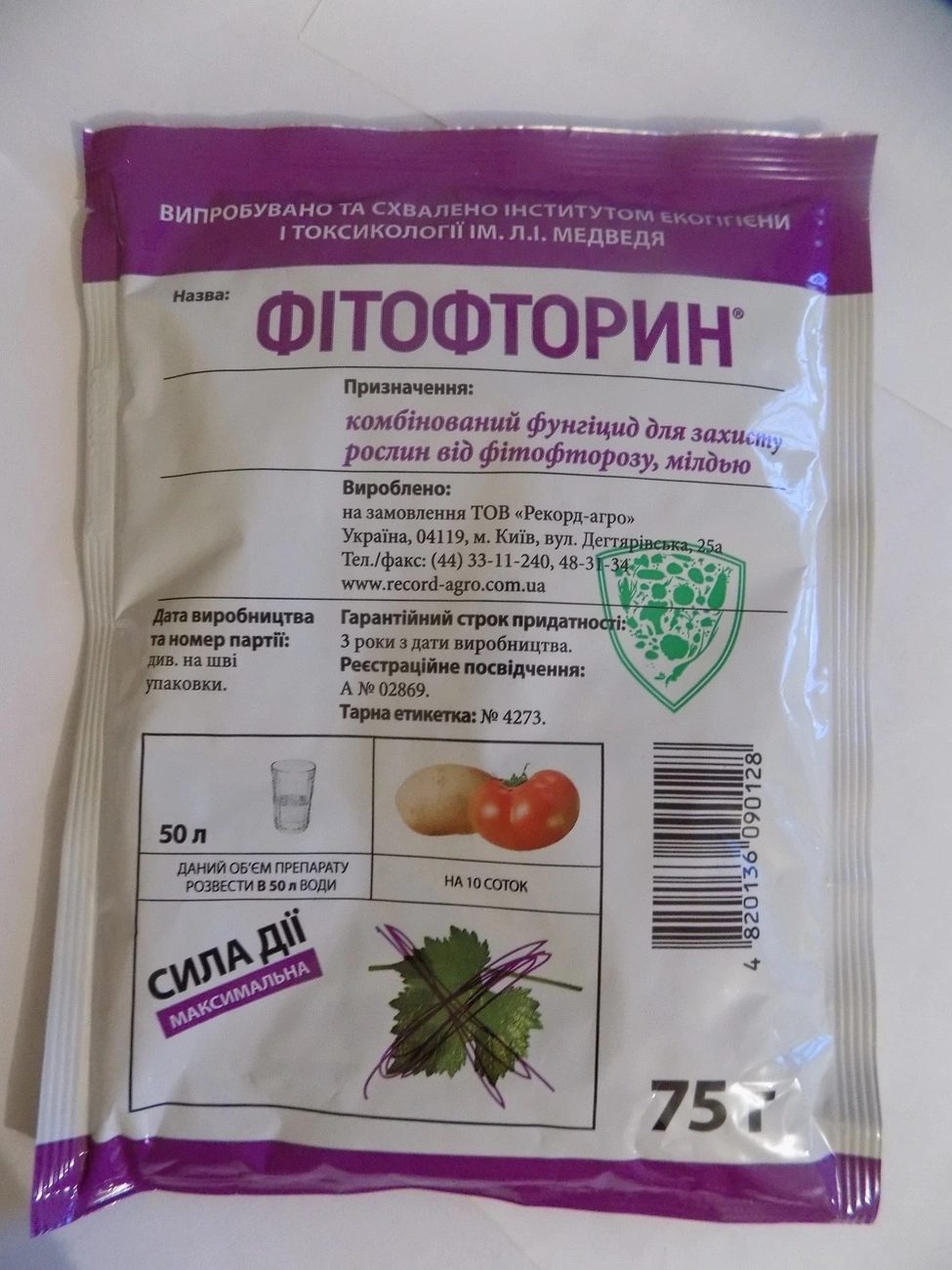 лікувальної дії для захисту овочевих культур від фітофторозу,