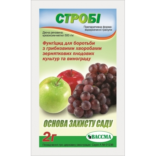 Строби- относится к новому классу фунгицидов и обладает фунгицидными свойствами в широком спектре грибных болезней. Благодаря этим свойствам препарат особенно эффективно подавляет грибы, которые появляются на поверхности листьев. Если ко времени обработки листья уже поражены грибной болезнью, Строби оказывает лечебное и искореняющее действие, подавляя рост мицелия и спорообразование. Новые вспышки инфекции эффективно предотвращаются за счет подавления процесса прорастания спор. Это защитное действие очень важно и при искоренении болезней, которые развиваются уже после прорастания спор и их проникновения в лист. Благодаря сильной защитной, лечебной и искореняющей способности.
