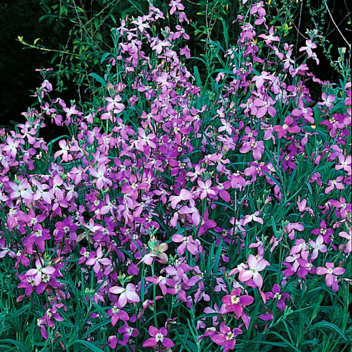 Матіола Вечірній Аромат - однорічна рослина з гіллястим стеблом висотою до 50 см. Квіти невеликі, бузкового кольору, з приємним ароматом, відкриваються ввечері. Характеризується прискореним циклом розвитку (від посіву до цвітіння 60 днів). Насіння змішують з піском і висівають прямо в грунт у квітні – травні на відстані 15-20 см. Цвіте з червня по липень. Якщо насіння сіяти 2 - 3 рази, витримуючи між посівами двотижневу перерву, то це продовжить період цвітіння з червня до жовтня. Матіола досить холодостійка, невибаглива рослина, краще росте на сонячних місцях, але витримує і напівтінь. Використовують матіолу для балконного озеленення, для змішаних посадок, мавританських газонів і клумб.