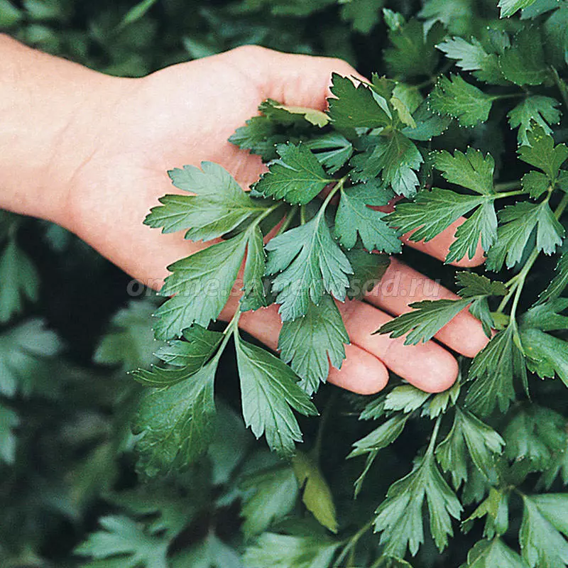 Листова петрушка Італійський гігант - з великим гладким листям. Цей сорт характеризується сильною енергією росту, великим розміром листя, приємним ароматом. Блискучий насичено-зелений колір зберігається протягом усього періоду росту. Листя не жовтіють, дуже швидко регенерують після зрізу, його можна проводити мінімум тричі в основний сезон, і при цьому розмір листя не зменшується.