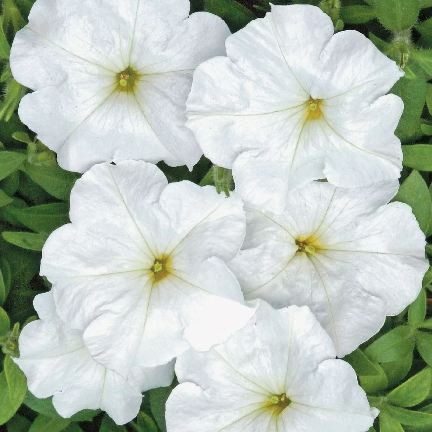 Багатоквіткова низькоросла, однорічна петунія. Рослини утворюють невеликий кущик заввишки 30-35 см, сильно розгалужений, рясно квітучий, швидко відновлює цвітіння після дощу. Квітки білого кольору, діаметром 5,5-6,5 см. Насіння висівають в середині - кінці березня. Цвіте весь сезон, починаючи з кінця травня. Рослина стійка до несприятливих погодних умов, холодостійка, світлолюбна, посухостійка. Вирощують в квітниках (клумби, рабатки), балконних ящиках і контейнерах, в саду, в підвісних кашпо або в домашніх умовах; а також для міських посадок-озеленення.
