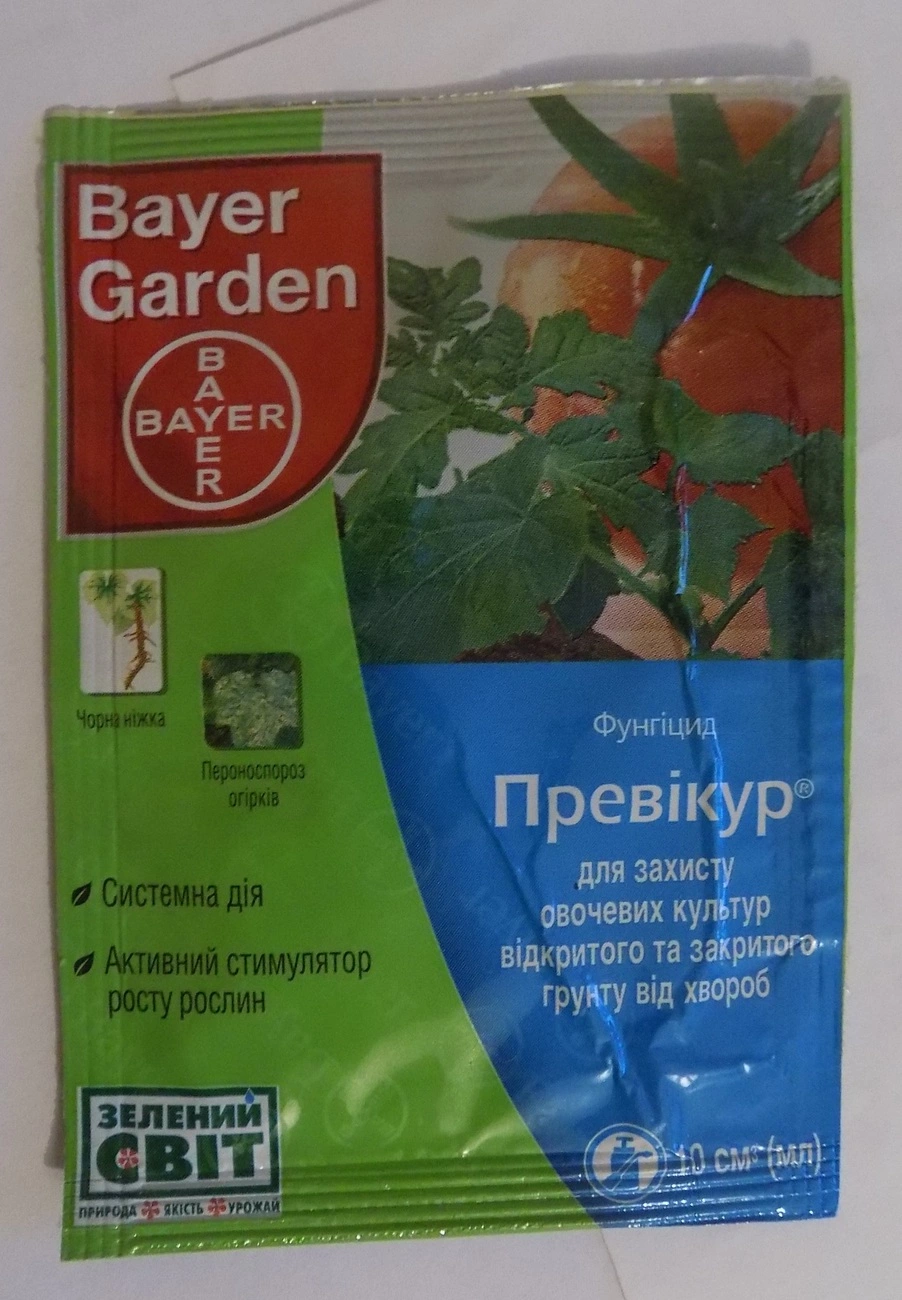 Превикур - препарат системного действия с ростостимулирующими свойствами для защиты овощных и бахчевых культур от патогенов группы ложных мучнистых рос и корневых гнилей поражающих семена, рассаду, стебель, листья и плоды растений в открытом грунте, в теплицах и в горшках.