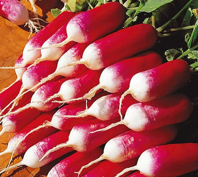 Редис 18 днів Ранньостиглий сорт редису. Коренеплоди циліндричної форми, яскраво-червоні, з білим кінчиком, довжиною 6 - 8 см, масою 25 - 30 г. М'якуш соковитий, слабо-гострий, ніжний, пікантна. Сорт характеризується відмінними смаковими якостями, відносною стійкістю до стрілкування та розтріскування. Вирощують у відкритому ґрунті та під плівкою. Використовують в свіжому вигляді. Посів насіння у відкритий грунт: початок квітень - середині серпня Глибина посіву: 1,5 - 2 см
