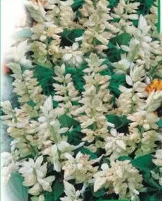Багаторічна трав'яниста рослина, що вирощується як однорічна, висотою 25-30 см. Пагони потужні, чотиригранні, світло-зеленого кольору. Кущики пірамідальної форми, компактні. Квітки подовжено-витягнутої форми, великі, розміщуються по 2-6 шт., Зібрані в суцвіття довжиною 15-25 см, білого кольору. Цвітіння рясне і тривале - з червня і до заморозків. Рослина світло- і теплолюбна. Добре переносить пересадку. Використовується на клумбах, рабатках, в садових вазах, контейнерах