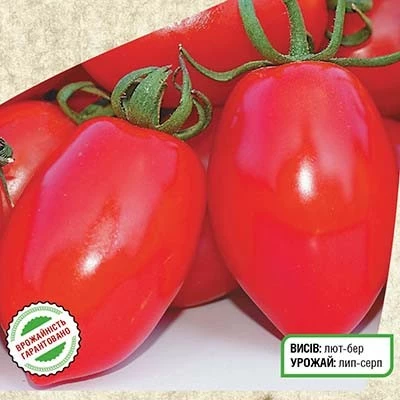 Відмінний середньопізній детермінантний сорт. Рослина дуже здорова, сильна, посухостійка, утворює овально-видовжені плоди з носиком, яскравого кармінового кольору. Відзначається чудовим смаком, гарною лежкістю і транспортабельністю. Сорт стійкий до фузаріозу та вертицильозного в'янення. Для свіжого споживання, приготування томатної пасти, кетчупу та консервування.