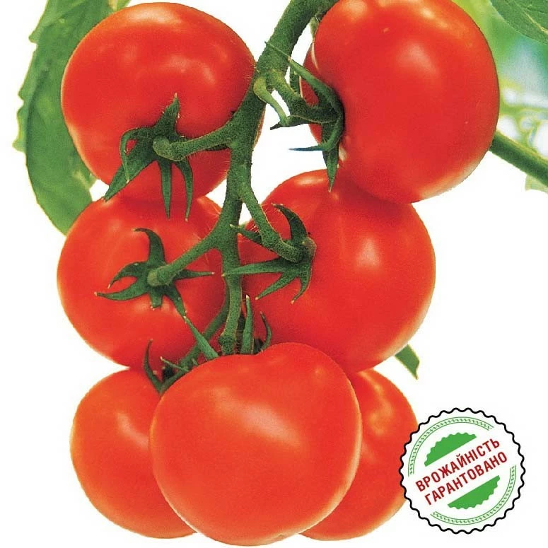 Вегетаційний період: 70 днів. Середня вага 140 грам, рослини з високою силою зростання, з потужним листям і товстим стеблом, яке вкриває плоди і сприяє позакореневе живлення, на кисті 8-10 плодів, біля плодоніжки є коліно, що забезпечує зручність збору. Добре розвинена коренева система, плоди округлі, м'ясисті, 3-х камерні, маленька насіннєва камера, товстостінні (6-8 мм), ароматні, насиченого червоного кольору, без зеленої плями, прожилок і стержня всередині, гладкі, вирівняні за формою і розміром, щільні.