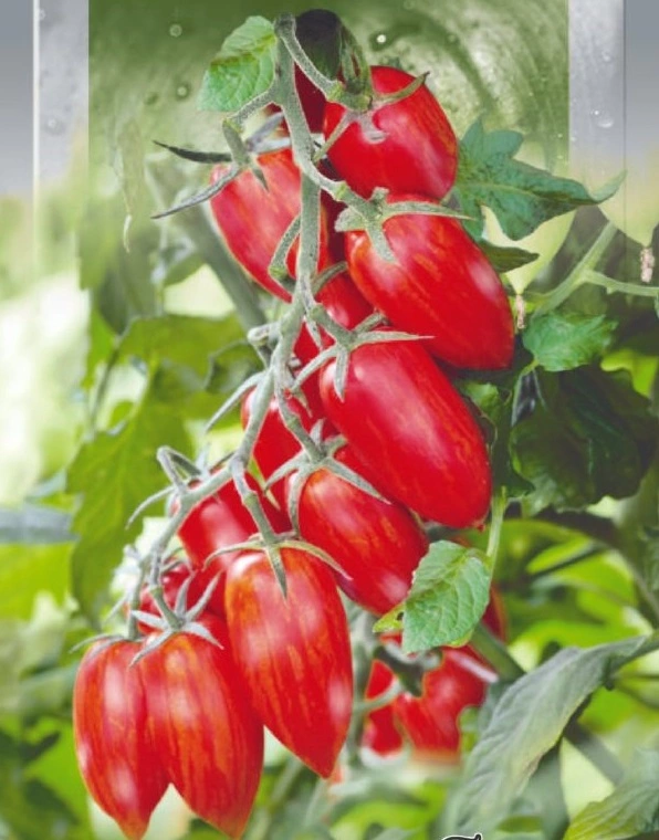 Детермінантний, невибагливий, ранньостиглий сорт. Максимальна висота куща рослини 1м. Час дозрівання томата не більше 80-85 днів. Забарвлення ніжно-рожевих плодів доповнюють помаранчеві смужки, що йдуть уздовж плоду. Неймовірно красива, пулевидной форми, сливка вагою близько 50 грам, увінчана маленьким носиком. Урожайність відмінна, все рослина просто усипана солодкими плодами. Томати прекрасні в засолюванні і консервації.