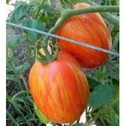 Ранньостиглий сорт (85-100 днів). Високорослий , кущі потребують підв’язки. Плоди мають дуже привабливий зовнішній вигляд, завдяки жовтим смугам на ярко-червоному фоні. Форма плода – сливовидна, вкусові якості – чудові. М’якуш плотний, сладкуватий. Маса зрілих томатів 90-120г. Універсального призначення, добре підходить для консервування.