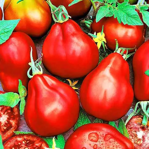 Серед незвичайних за формою плодів томат «Трюфель червоний» займає одну з лідіруючих позицій. Його цікава грушоподібна форма інтригує початківців овочівників. Культура індетермінантна, середньостигла, з підвищеною стійкістю до різких похолодань. Томат «Трюфель червоний» формує високі кущі в 1,0-1,5 м заввишки, які вимагають підв'язки. Плоди мають щільну структуру, м'ясисті, насиченого червоного забарвлення. Культура плодоносить до заморозків, а недостиглі плоди можуть зберігатися до 4-х місяців