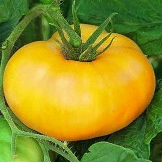 Листи рослини великі, зелені, стебло міцне. Суцвіття звичайне, на кисті формується 3-4 томати. Один плід в середньому важить від 400 до 600 грам. Колір помідорів яскраво-жовтий з золотими переливами. Всередині він жовтий з оранжевим і рожевим відтінком. Плоди формуються овальні, не жилаві, м'ясисті і смачні.