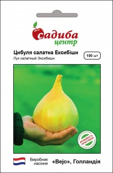 Ексібішн – пізньостиглий сорт салатного лука для свіжого вживання і короткого (4-5 місяців) зберігання. Рослина потужна з хорошою силою зростання, вимагає високих доз мінеральних добрив. Надвисокий урожай крупних (до 900 г) цибулин. Цибулини щільні, округло-приплюснутої форми, привабливого золотистого забарвлення, дуже солодкі. Характеризуються високим вмістом вуглеводу і соку. Всі цибулини однорідні за розміром, який залежить від густоти посадки. Підходить, як для вирощування розсадою (касетна технологія, вік розсади 45-60 днів), так і прямого висіву (у південних регіонах України).